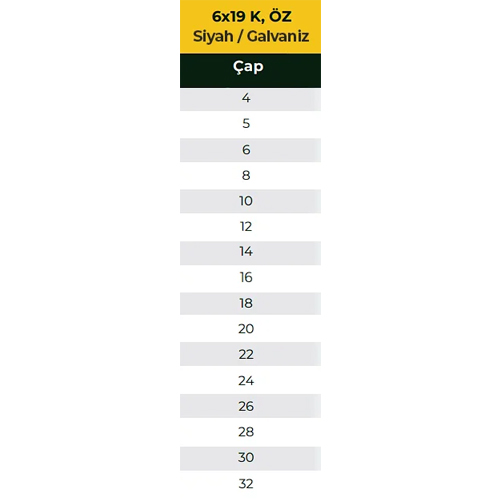 Köşkerler Çelik tarafından üretilen 6×19 K, ÖZ çelik halat, geniş bir endüstriyel kullanım yelpazesine sahiptir. Bu halat, vinçlerden köprü inşaatlarına, gemi halatlarından tarım makinelerine kadar çeşitli uygulamalarda güvenle kullanılabilir. ÖZ tipi özel zincirleme düzeni ve Köşkerler Çelik’in yenilikçi üretim yaklaşımı sayesinde, halat yüksek dayanıklılık ve uzun ömürlü performans sağlar. Güçlü yapısıyla ağır yüklerin güvenle kaldırılmasını mümkün kılar ve sektördeki çeşitli endüstriyel gereksinimlere yanıt verir. Köşkerler Çelik markası, kaliteli ve güvenilir çözümler sunan bir lider olarak bilinir.